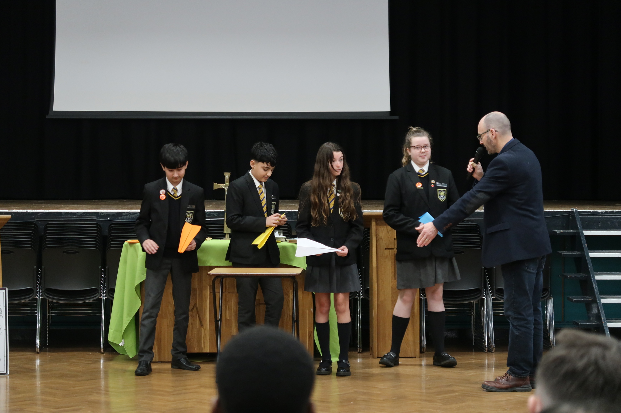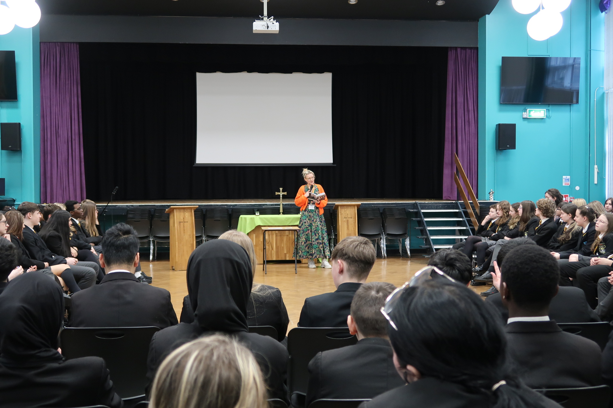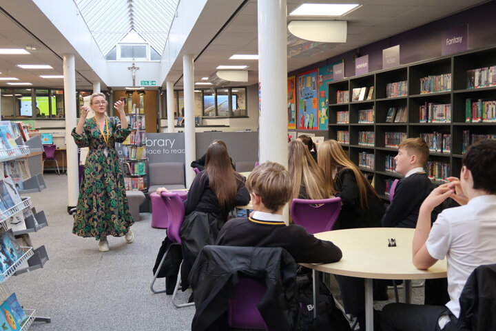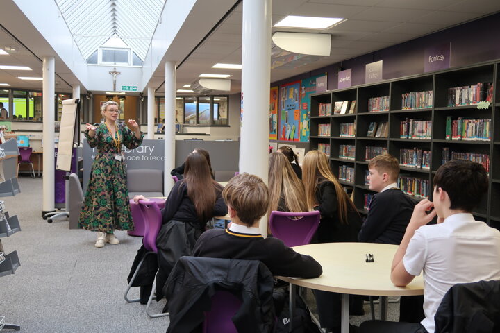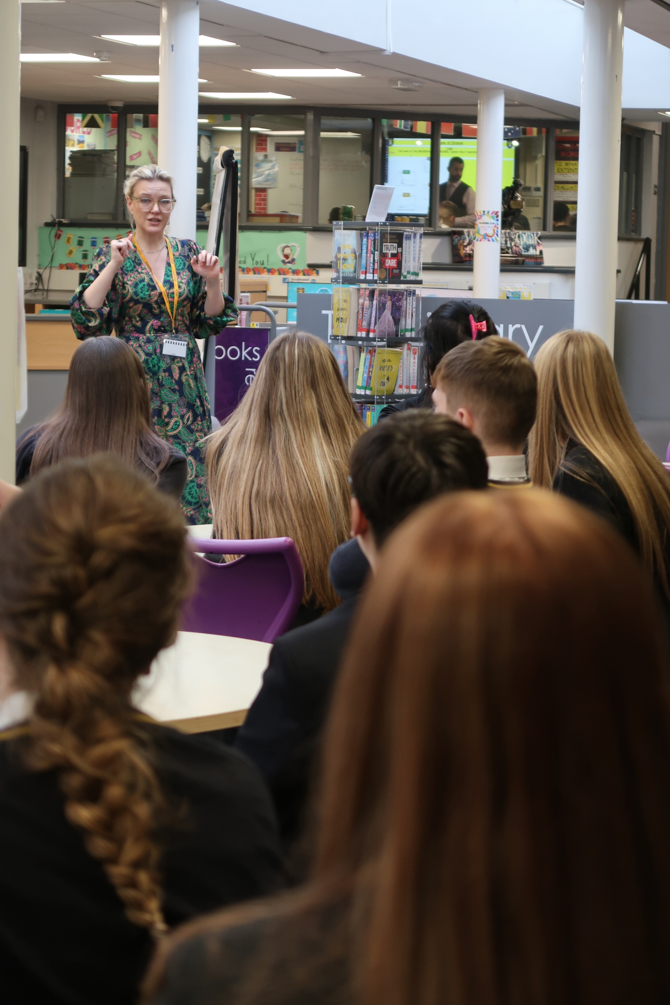 Mount Carmel also welcomed Ruth Cockburn to speak during the Festival. Ruth ran a workshop for groups of pupils guiding them to write 'jibberish' poems about rubbish superheroes thinking up names for their superheroes, then writing 4 rhyming couplets. Ruth then recited their rhymes whilst playing a guitar!