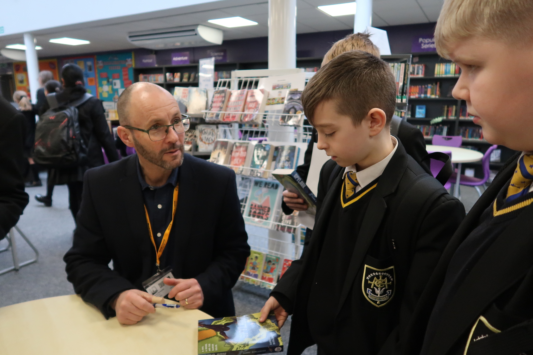 Author Danny Rurlander spoke to pupils about his latest action, mystery and adventure book called 'Spylark'. He explained how he structures his stories and plots, how he creates the characters and the environment of the story. He then signed copies of his book in the school library to the many pupils who had purchased a copy.