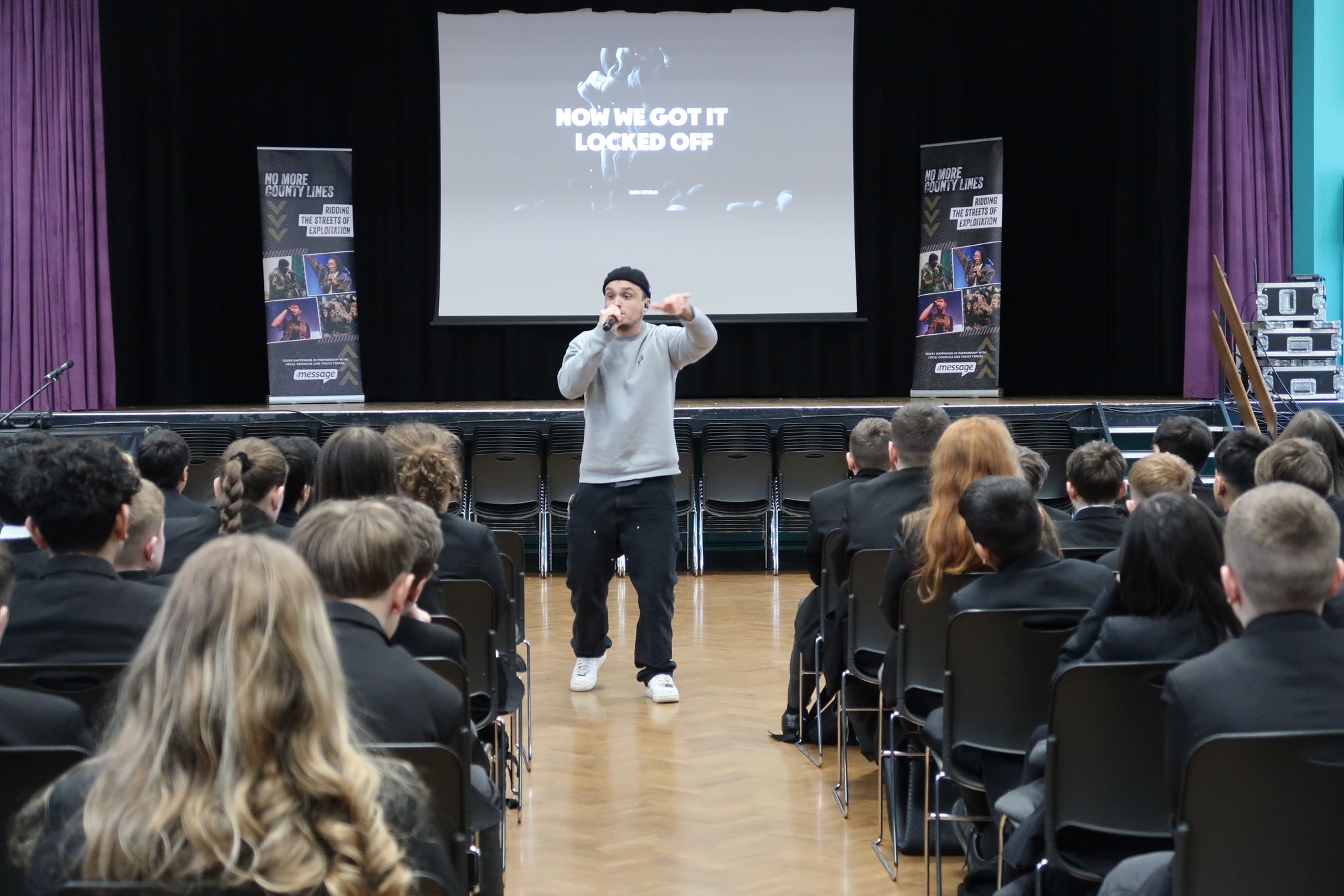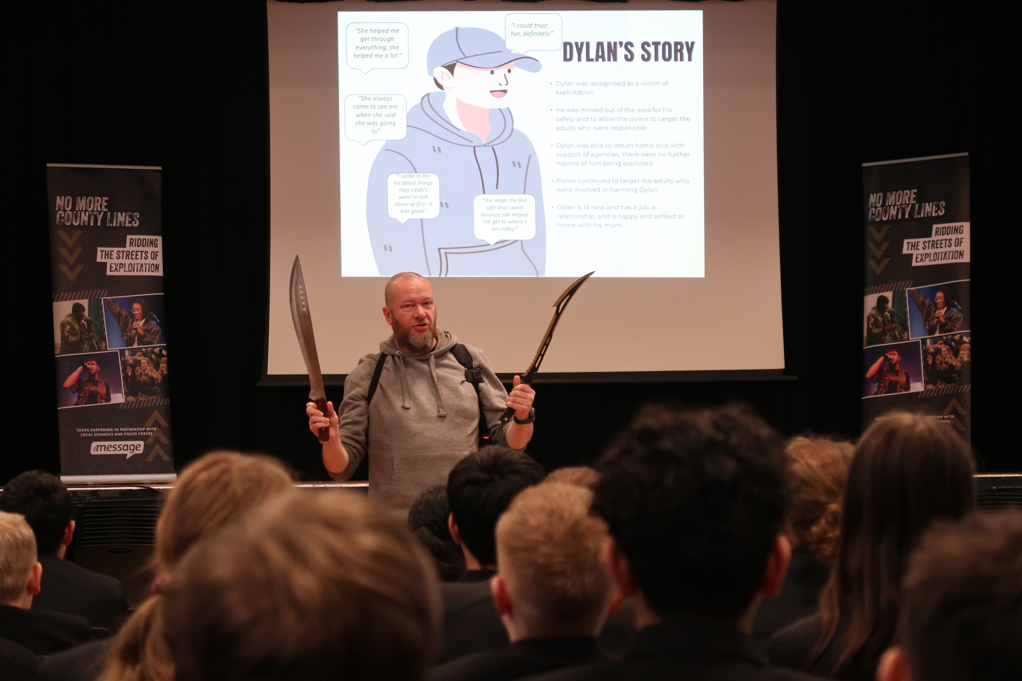 Pupils from all year groups heard about how they can say ‘no’ to knives and exploitation and find hope.